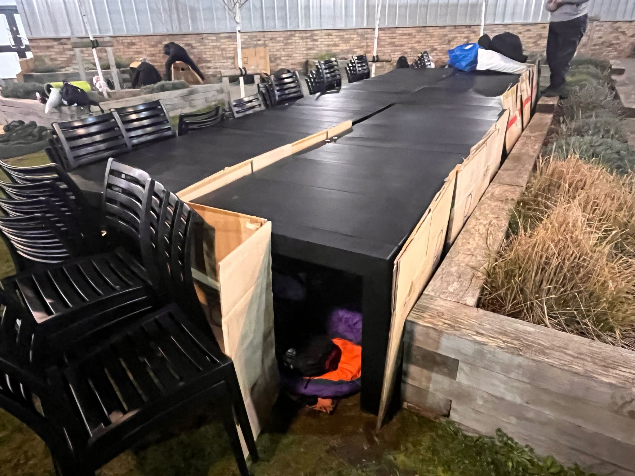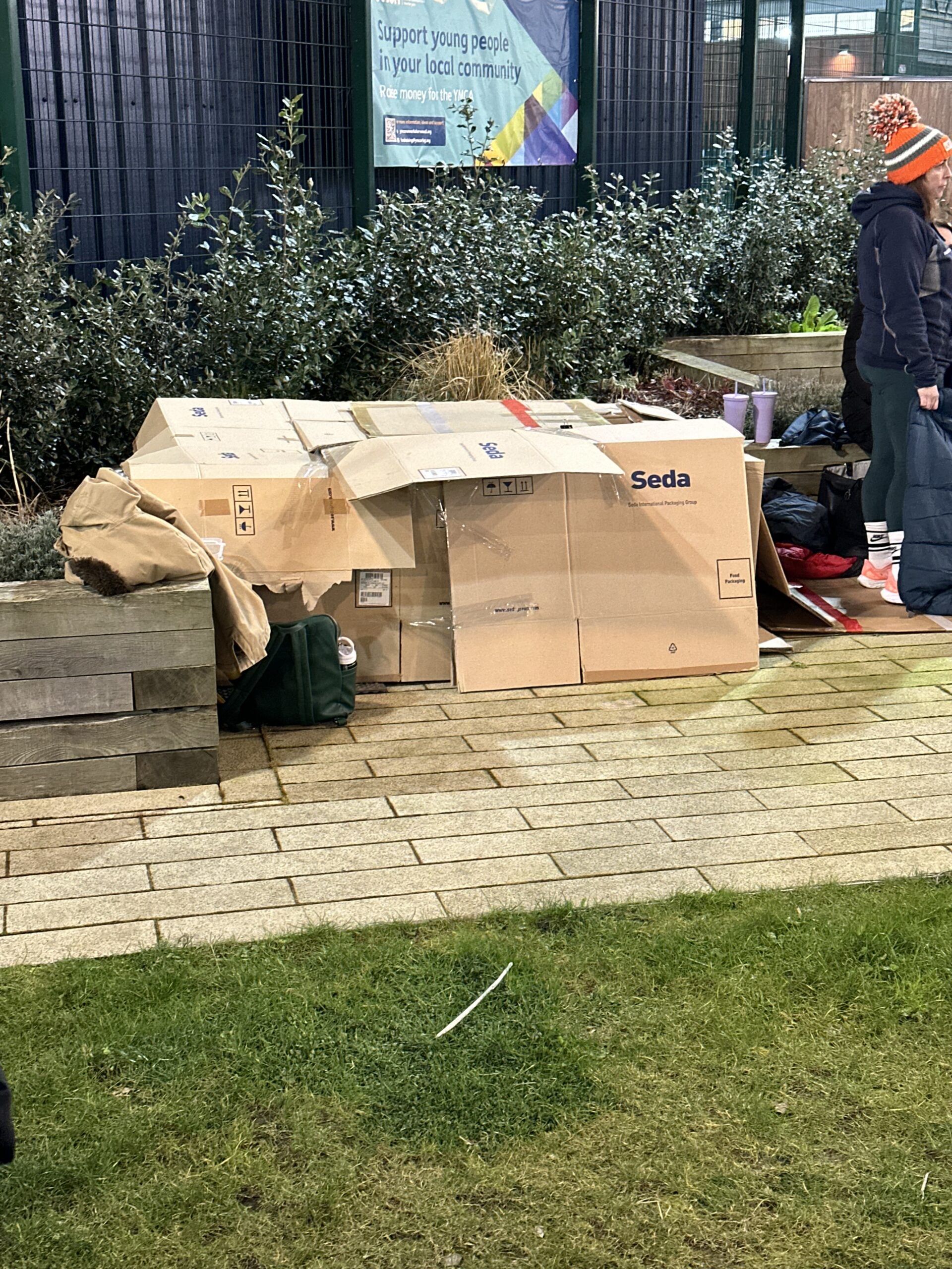 - Everyone at the Newark YMCA making their shelters for the night