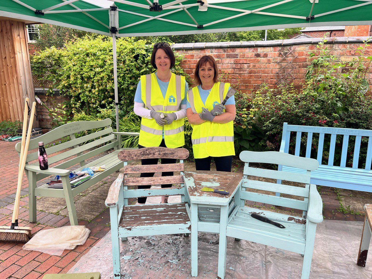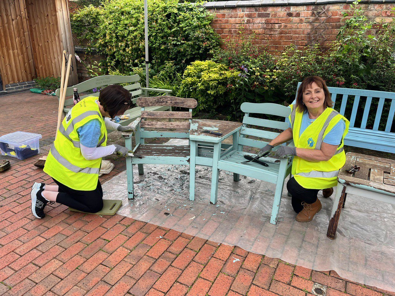 Following a second visit by Linda, Sarah, Helena, Catherine and Nicola from #TeamTallents, David also said: “The finger crossing seemed to work – yesterday was dry but not overwhelmingly hot. Your five volunteers were lovely and worked very hard. Some of the garden furniture they prepared will be painted today, and our gardener Kim was thrilled at the difference it made having a group of people working throughout the day – it has really got the garden and grounds back to where she wants them to be.”