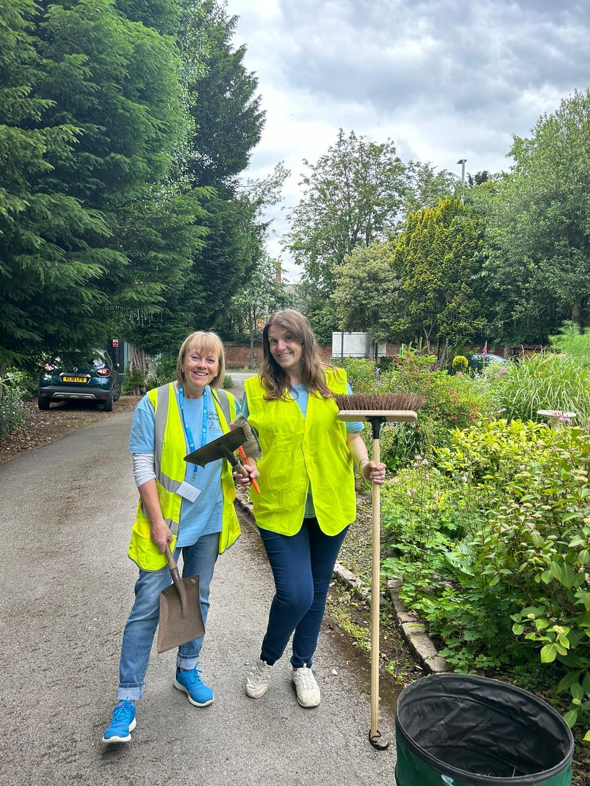 - Mary and Stephanie get stuck into cleaning up leaves with their brooms!